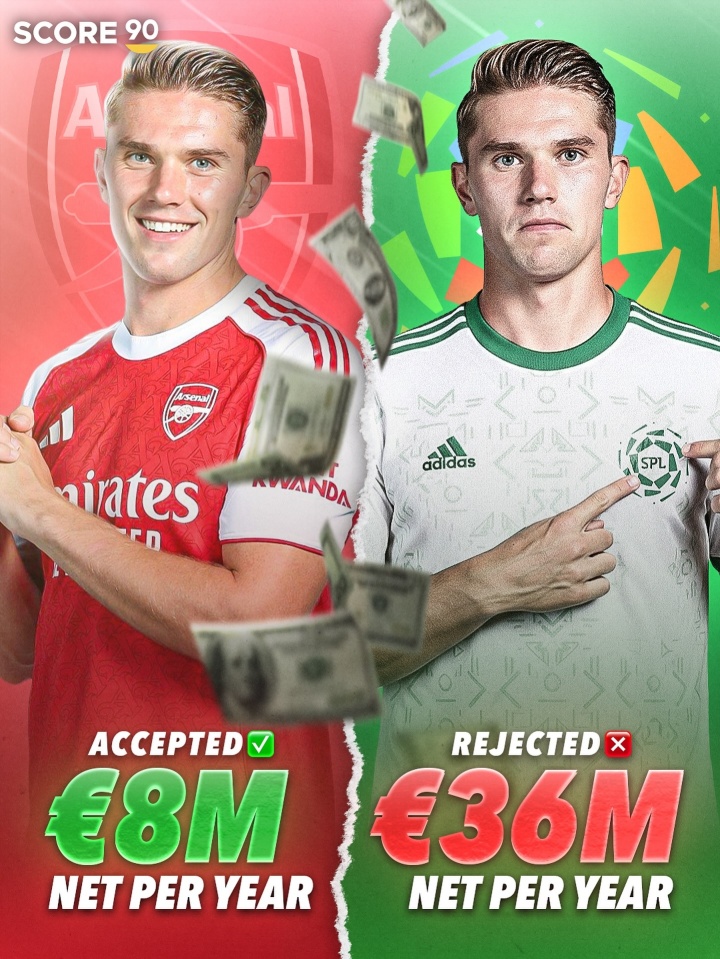 查尔基亚斯在节目中说道:“阿森纳并非唯一向约克雷斯开出报价的球队,沙特方面也向他提供了夸张的薪水,税后年薪超过4亿瑞典克朗(约3620万欧元)。”